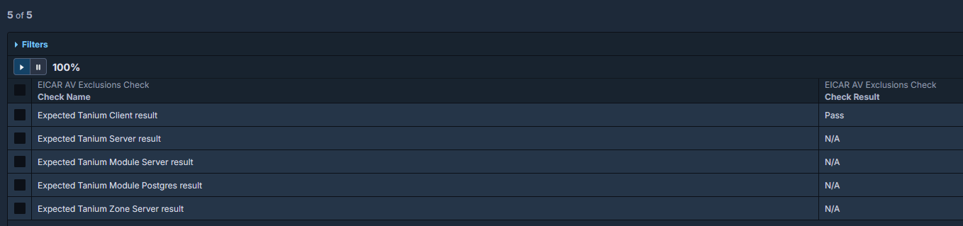Incorporate this check into new environment onboarding and after major security policy changes to validate that Tanium operations will not be disrupted by endpoint protection controls.